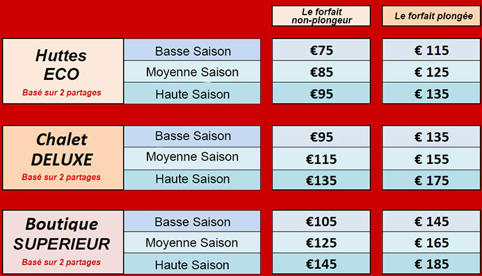 TOUS LES TARIFS SONT PAR PERSONNE ET PAR NUIT ET COMPRENNENT LA PENSION COMPLÈTE SOFT ALL INCLUSIVE